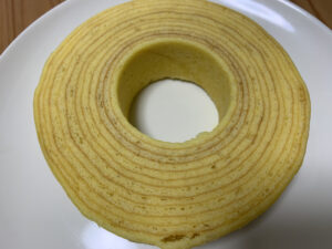 このバウムクーヘン、袋から出しただけでしっとりしているのがわかりました。