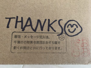 Amazonで発注すると、かわいいにこちゃんマークが買いてあるダンボールが届きました。