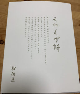 実際に今回、私以外はこのくず餅を食べたことのない2人と一緒に3人で開封したのですが、船橋屋とくず餅についての説明書きを見ながら「へぇ〜!」と興味津々の様子で、話がはずみました。