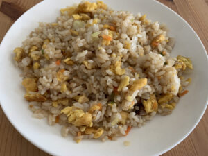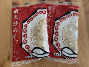 「直火炒めチャーハン」はこちらの2袋入りで、お皿に出して電子レンジでチンするだけ。