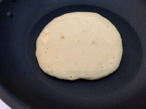 2:フライパンを熱して、生地を流し入れる。