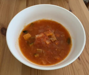 | 原材料 | トマト(イタリア)、たまねぎ(国産)、かぼちゃ(国産)、キャベツ、セロリ、にんじん、オリーブ油、ベーコン、でん粉、コンソメ、食塩、にんにく、こしょう、ローレル、(一部に豚肉を含む) |