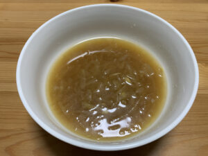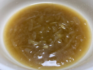 他の通販でも、こういった玉ねぎのスープを注文して食べたことがありますが、ほんの少し玉ねぎが入っている程度。