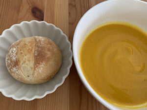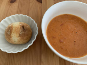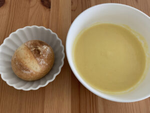 パンとスープ別々でもおいしいですが、クリーミーなスープがパンに染み込むとさらにおいしさがアップしたように感じました。