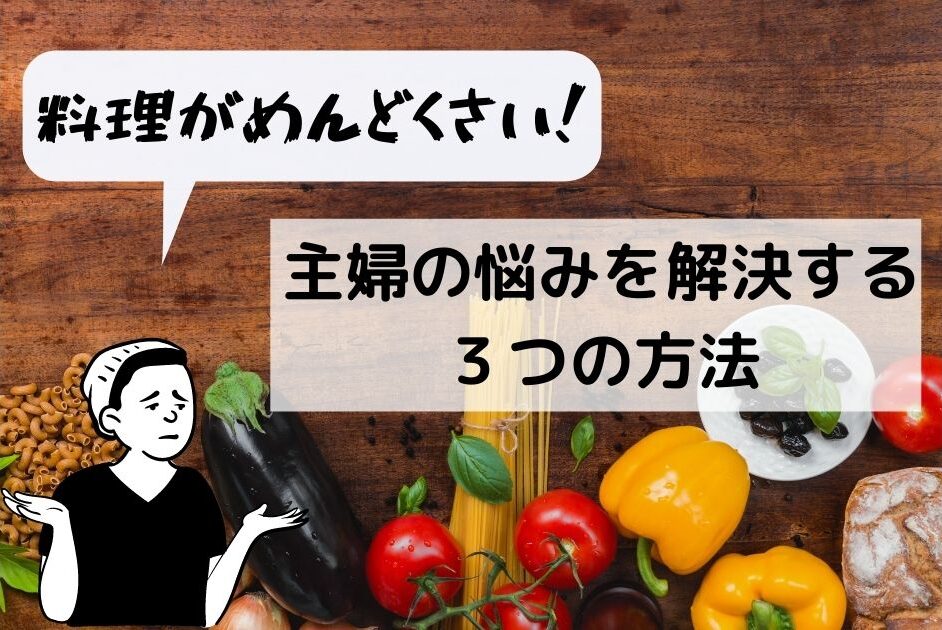 本記事は、こんなお悩みをもつ主婦の方に向けて、1日3食、毎日料理しつづけている主婦が悩みを解決する方法について書いています。