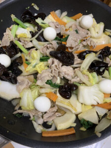 うずらの卵以外の材料を入れ、全体に火が入るまで炒める。