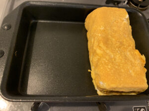 玉子4個分のだし巻きを、焼き終わった写真がこちら。