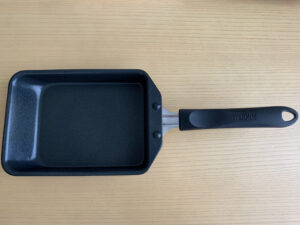 フライパンの大きさは、3個くらいを使っただし巻きを作るのにちょうどいいサイズ感です。