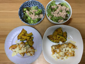 2日目:「ソースで簡単!タンドリー風チキン」「ツナサラダ」