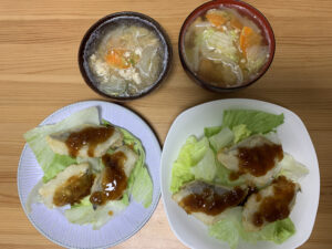 3日目:「味付けラクラク!骨取りたらの香味じょうゆ」「野菜のそぼろ汁」