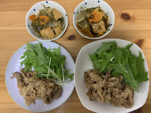 4日目:「豚肉のごまみそ焼き」「刻み昆布と大根の煮もの」