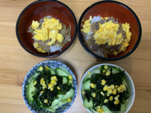 5日目:「ふわたま牛丼」「わかめサラダ」