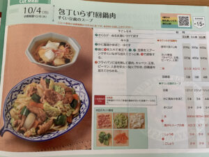 食材のお届け前にポストに入っていた、こちらのパンフレットに1週間の献立一覧や、レシピが書かれていました。