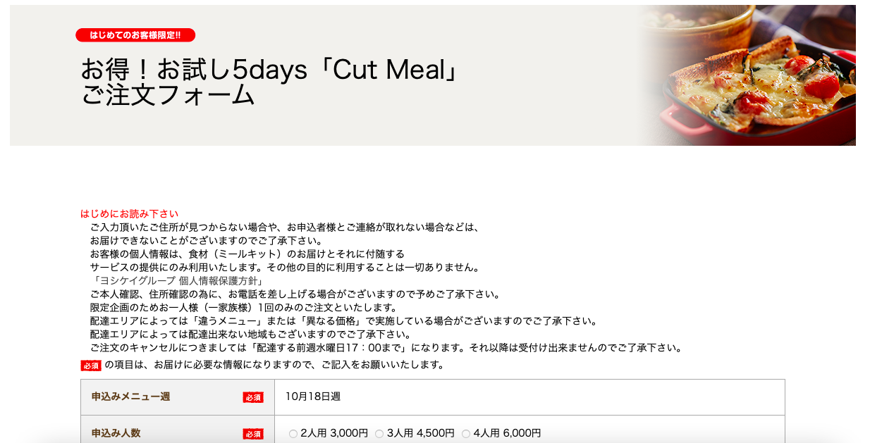 ヨシケイのお試しを注文する方法